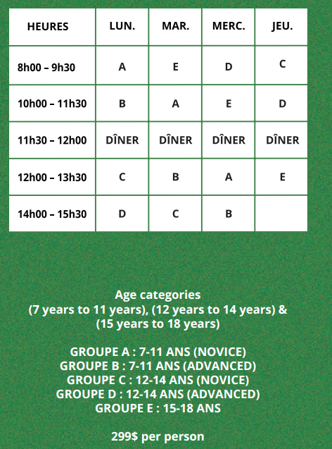 Ce mélange unique de connaissances théoriques et pratiques fait d’Alexandre un instructeur bien préparé pour soutenir les jeunes golfeurs. Nous sommes ravis de l’accueillir parmi nous et sommes convaincus qu’il partagera son amour du golf tout en vous donnant de précieux conseils pour vous aider à améliorer votre jeu.